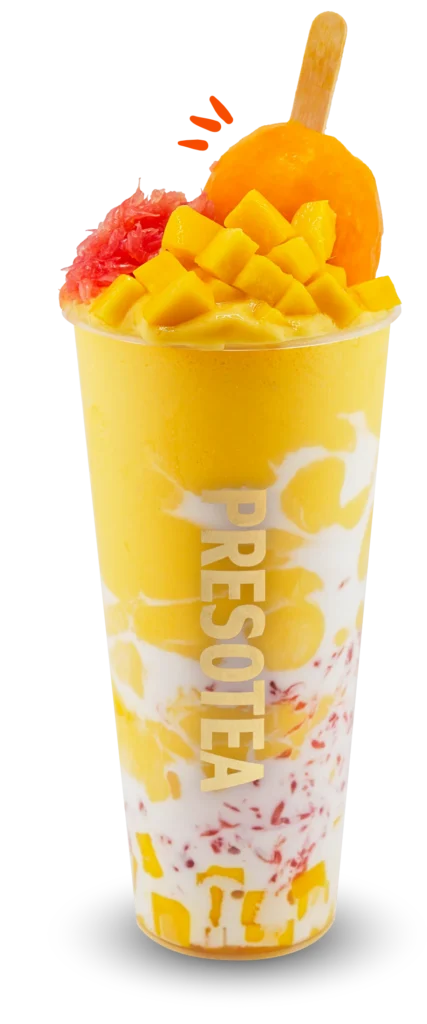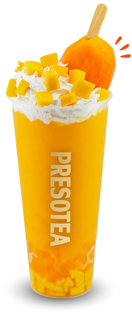 Pictures for illustration only. Buy 1 regular Mango Popsicle Series drink, get the 2nd 50% off (same or different). Upsize to large for +$1 each. Toppings extra. Valid in-store, kiosk & Presotea Canada app only. Not combinable with other offers. Available at select locations in ON, QC, NS & NB. All rights reserved.